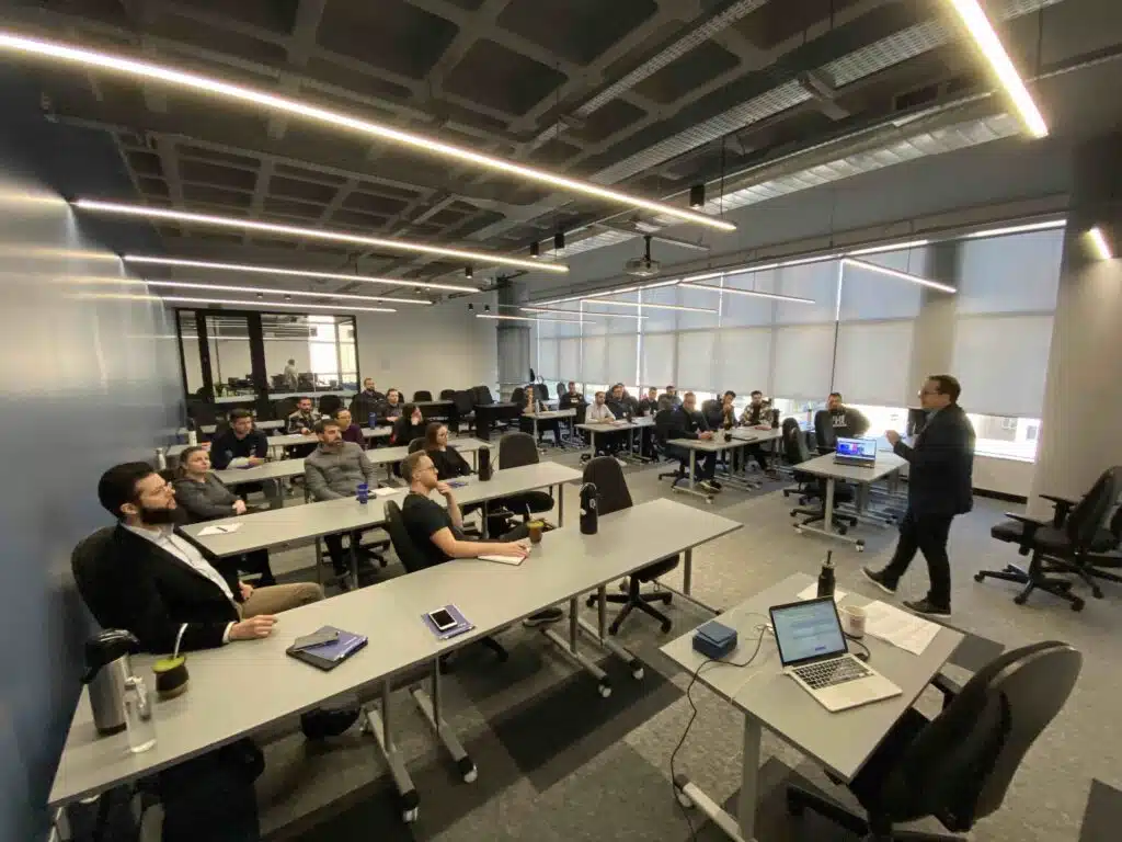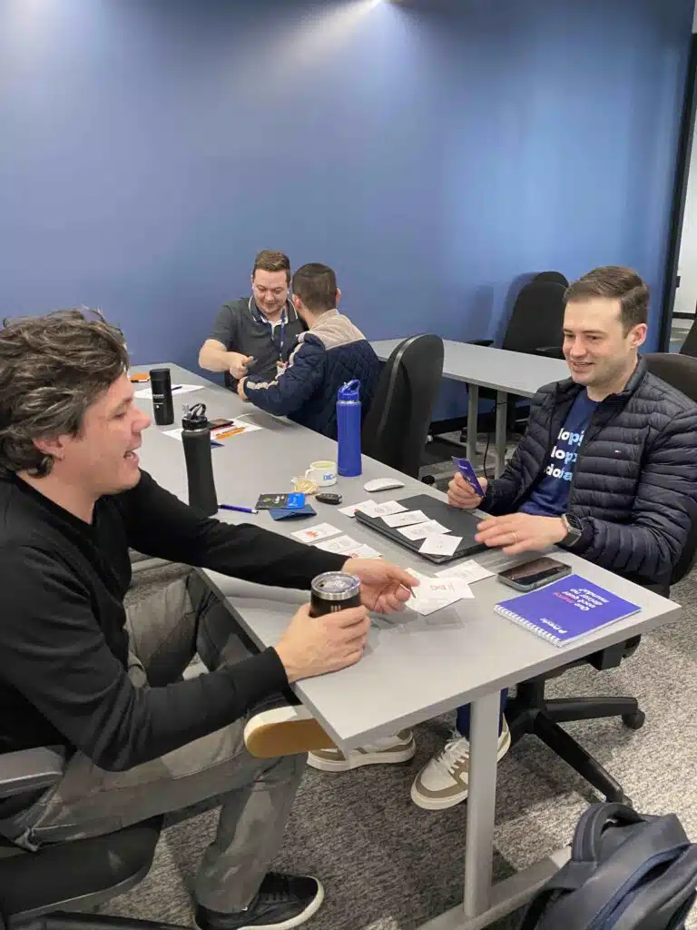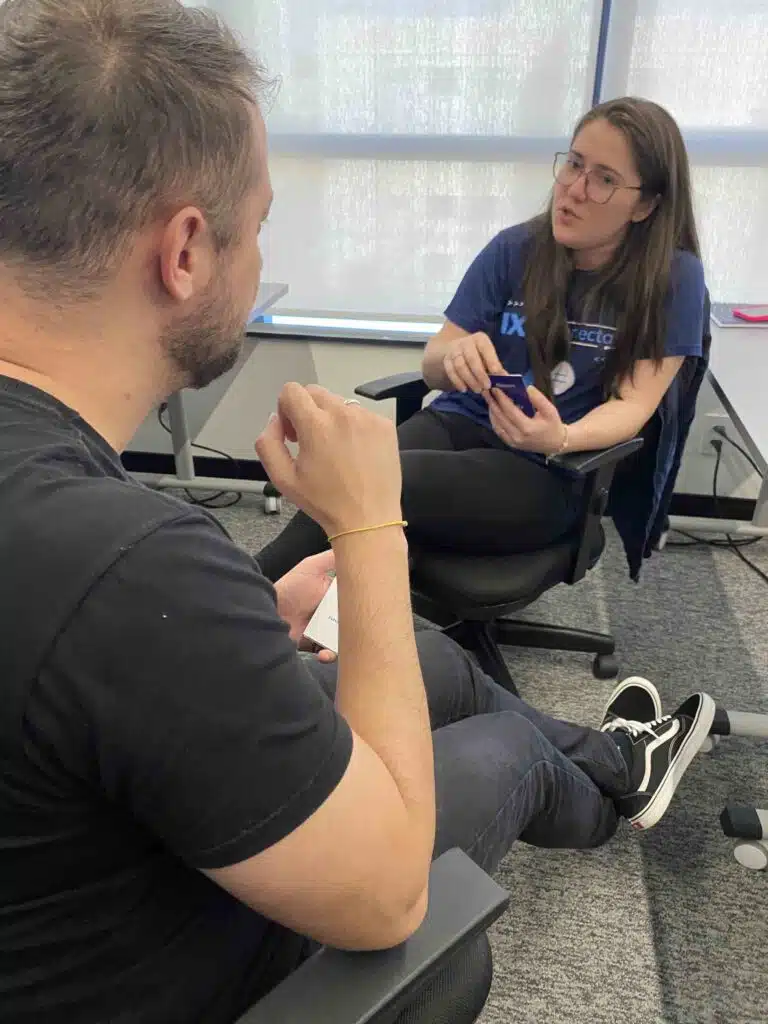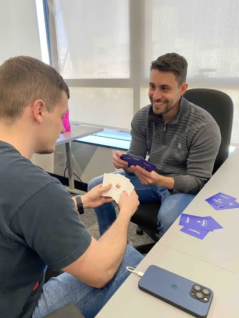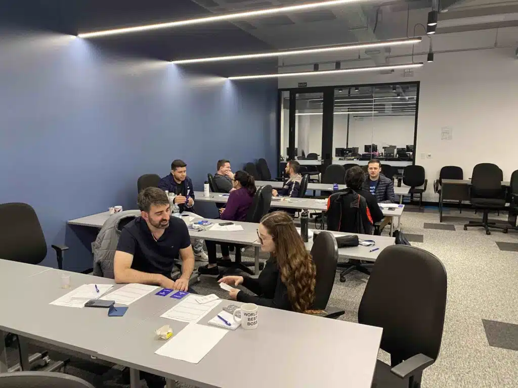 Aplicamos metodologias ativas e gamificação, com muita prática de conversação para abordar temas como comunicação não-verbal, comunicação não-violenta para conversas difíceis e técnicas de rapport para gerar maior conexão nas relações e fluidez nos processos.